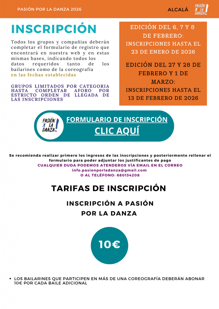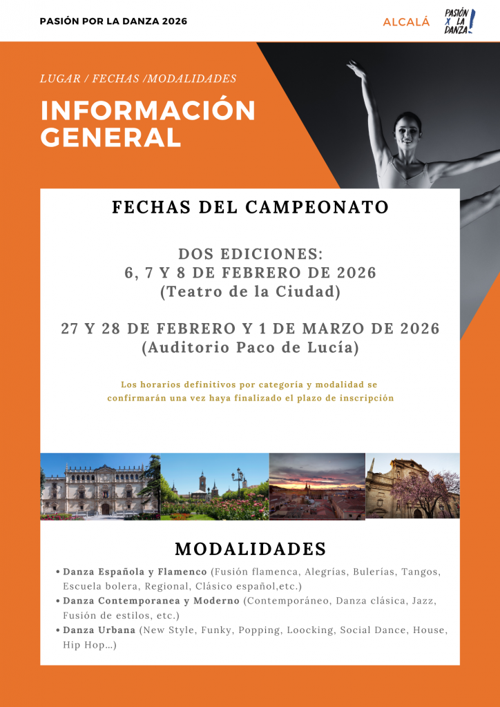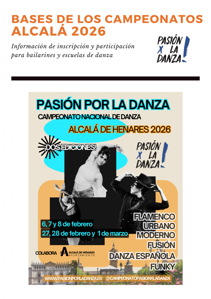 A continuación encontrarás las bases para participar en las dos próximas ediciones de Pasión por la Danza Alcalá 2026
