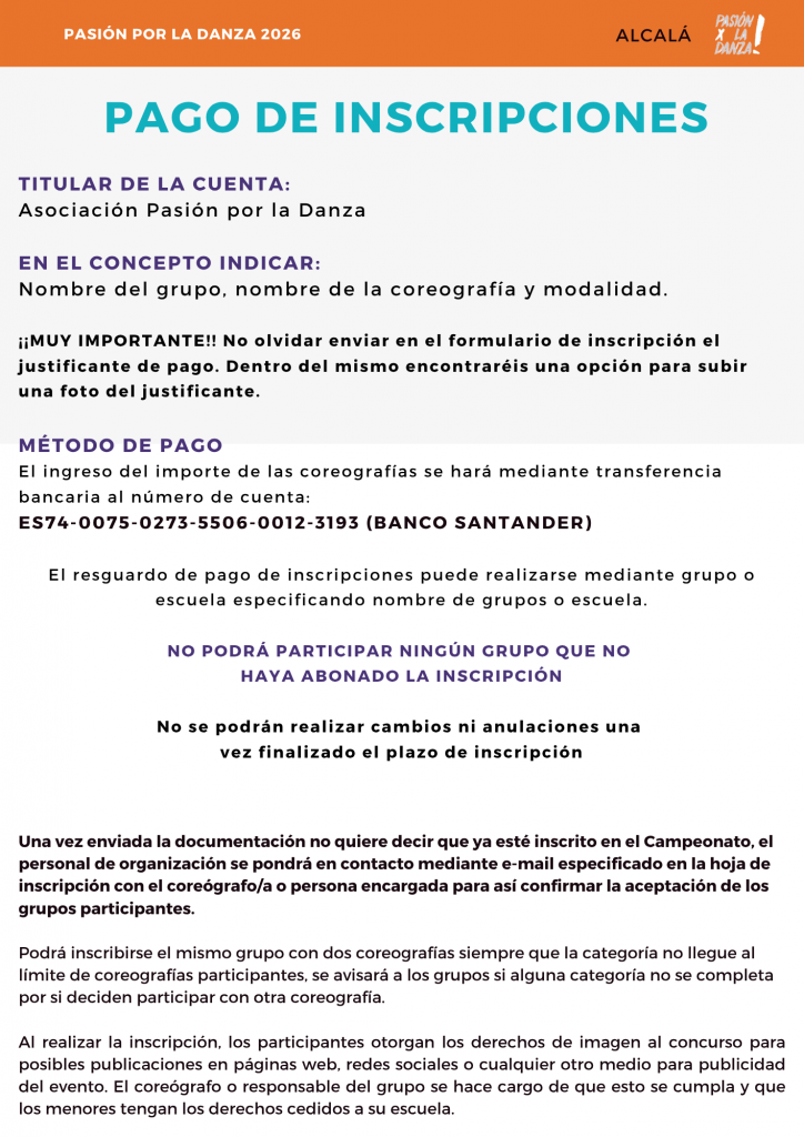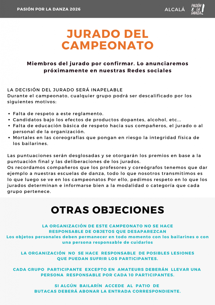 CUALQUIER DUDA O ACLARACIÓN QUE NECESITES SOBRE LAS BASES DEL CAMPEONATO, CONTACTA CON NOSOTROS A TRAVÉS DEL EMAIL info.pasionporladanza@gmail.com